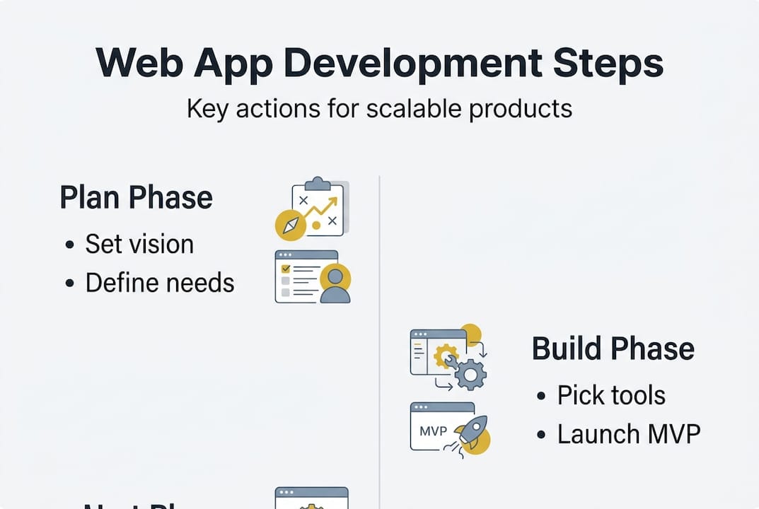 Startups fail at web app launches more often than they should, and the culprit is rarely the idea itself. It's the gap between a great concept and the technical decisions that shape it: vague requirements, the wrong stack, or security bolted on at the last minute. Building a scalable, reliable web app requires a clear process, not just talent. This guide walks you through every phase, from sharpening your product vision to shipping a secure, tested product. Whether you're launching your first MVP or rebuilding a product that outgrew its original architecture, you'll find a practical, step-by-step roadmap here.